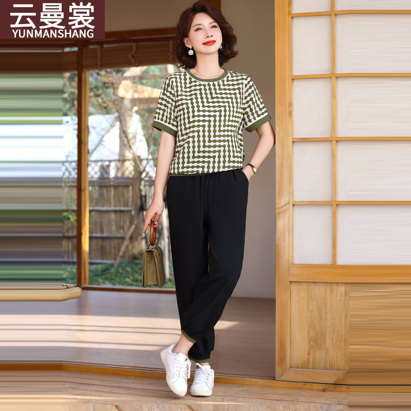 Pakaian Ibu Model Baru Pakaian Lari Santai Pengurangan Usia Modis Musim Panas 2025 Pakaian Olahraga Mudah Dipadu Padan Gaya Korea Setelan Dua Potong Terlihat Langsing