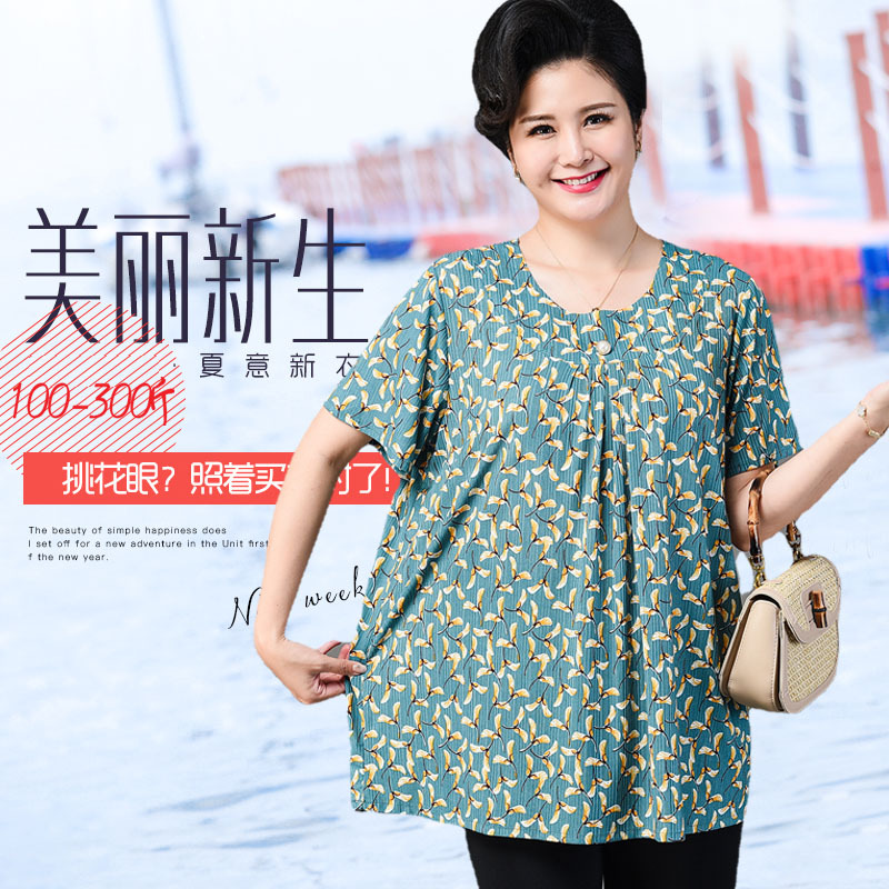 Setelan wanita gemuk lengan pendek, pakaian wanita paruh baya dan lansia, setrip es musim panas 1513