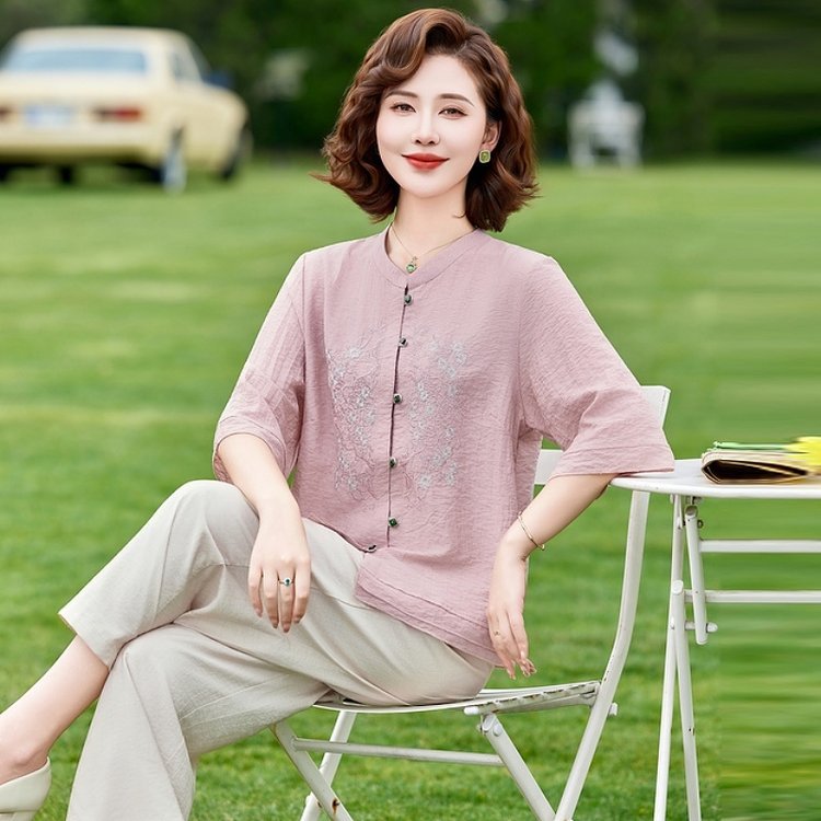 Pakaian Musim Panas Ibu Gaya Tiongkok Setelan Katun Linen Model Baru 2025 Pakaian Wanita Ukuran Besar Gaya Barat Musim Panas Setelan Dua Potong Katun Linen