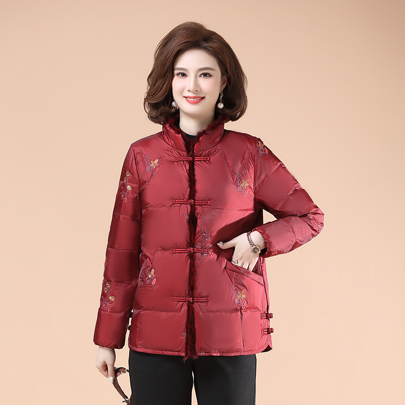 Jaket Bulu Bebek Ibu Model Baru Musim Dingin Hangat Wanita Gaya Barat Bordir Model Pendek Gaya Tiongkok Atasan Jaket Selangit