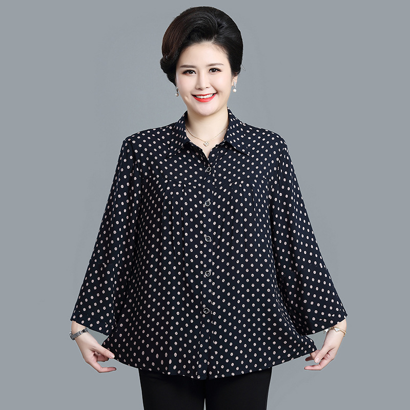 Kemeja gaya Barat pakaian musim semi ibu paruh baya, Atasan kemeja kecil elegan untuk wanita paruh baya dan lansia 50 longgar modis