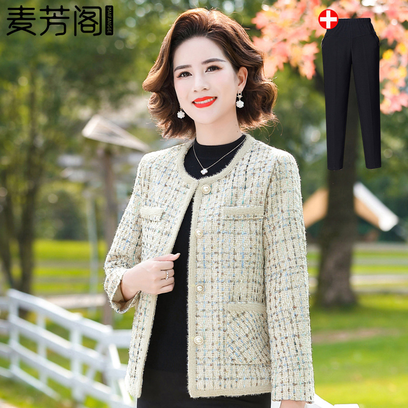Jaket musim gugur ibu 2023 gaya baru untuk wanita paruh baya berusia 50 tahun, pakaian luar kasual yang elegan dan anggun untuk musim gugur dan musim dingin.