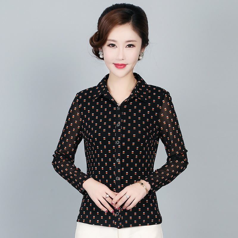 Suara bambu 2024 jala Musim Semi dan Musim Gugur ibu paruh baya dan lansia, kemeja lengan panjang wanita usia 40-50 tahun plus ukuran kemeja ibu