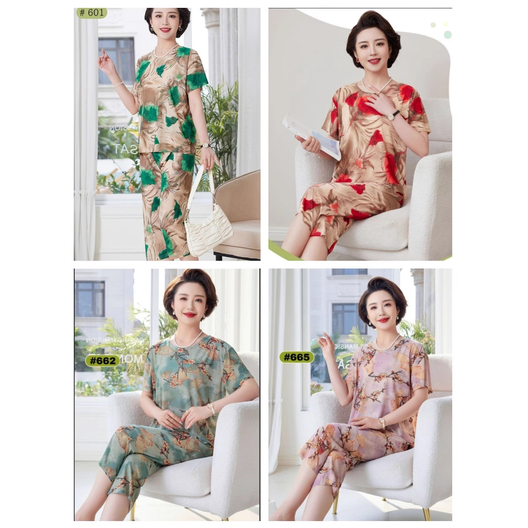 Pakaian musim panas sutra es untuk usia paruh baya dan lanjut usia 2025 piyama lengan pendek ibu baru set pakaian rumah tipis dan sejuk untuk wanita tua.