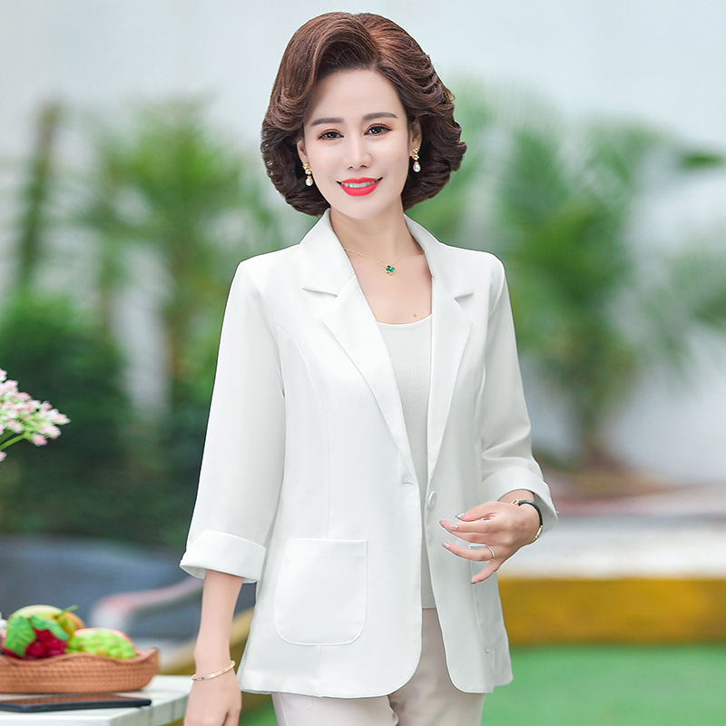 Setelan jas pendek untuk wanita paruh baya, pakaian wanita paruh baya dan musim panas, setelan atasan pendek usia 50 tahun, pakaian pelangsing perlindungan matahari