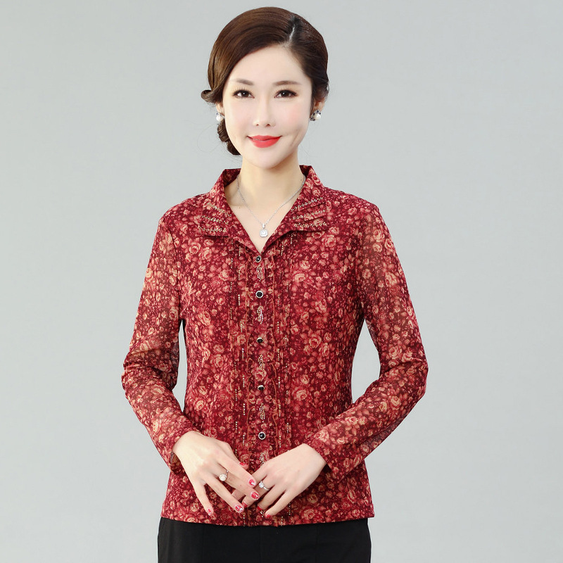 Suara bambu 2024 pakaian musim semi baru kemeja wanita paruh baya pakaian ibu mesh Taiwan pakaian musim semi ukuran plus atasan kaus