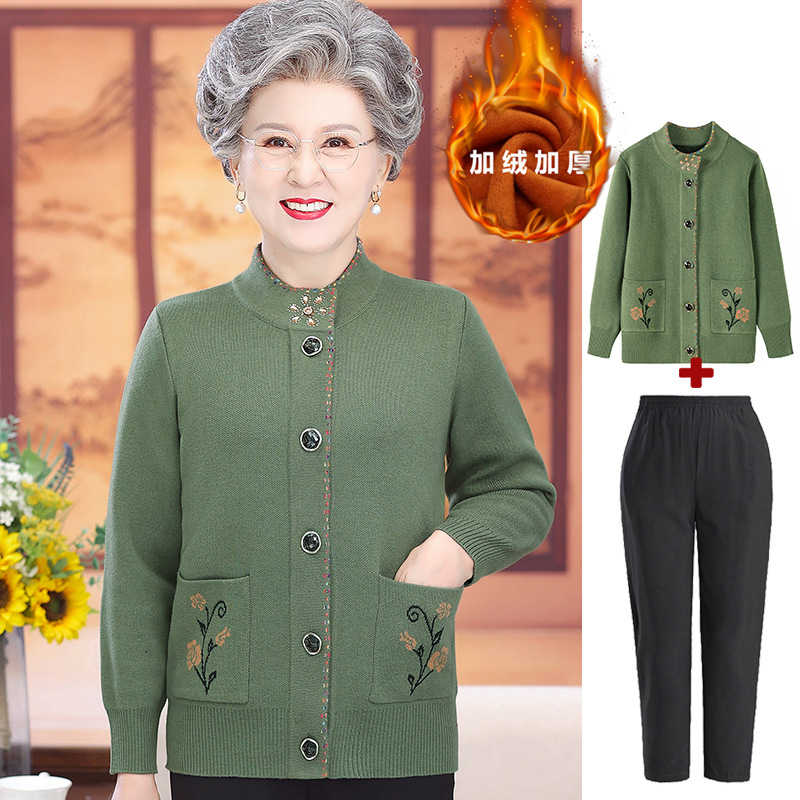 Sweter wanita paruh baya dan lansia, pakaian atasan kardigan ibu tua tebal musim gugur dan musim dingin