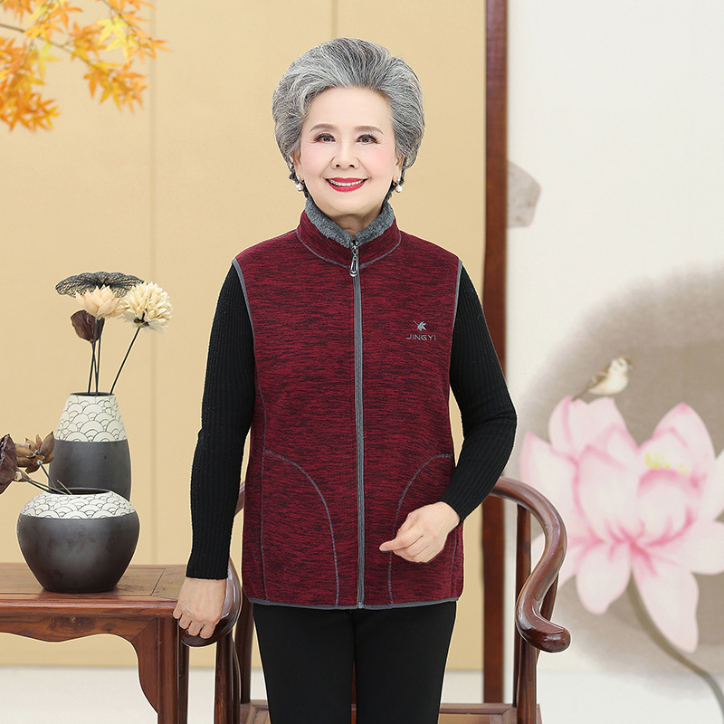 Jaket bulu polar wanita paruh baya dan lansia, jaket bulu domba ukuran besar hangat modis pakaian ibu musim semi dan musim gugur baru grosir