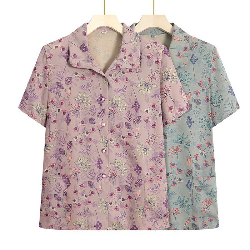 Kemeja Lengan Pendek Pakaian Musim Panas Nenek Kemeja Wanita Setengah Baya Wanita Ibu mertua Pakaian Lansia Wanita Atasan Musim Panas Ibu