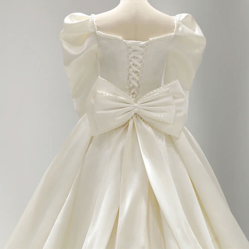 Gaun Pengantin Ringan Pas Satin Gaya Perancis Pengantin Wanita Model Baru 2025 Retro Putri Benang Utama Bertekstur Kelas Tinggi