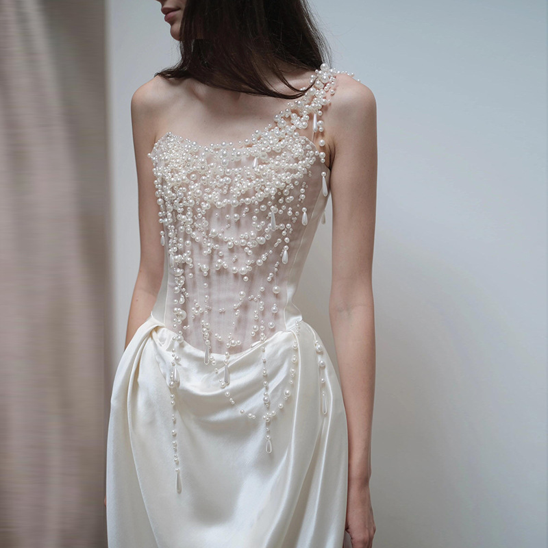 Gaun Pengantin Wanita Model Baru 2025 Tekstur Superior Model Prancis dengan Satu Garis Bahu Pengantin Wanita