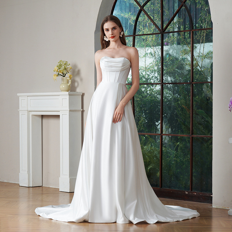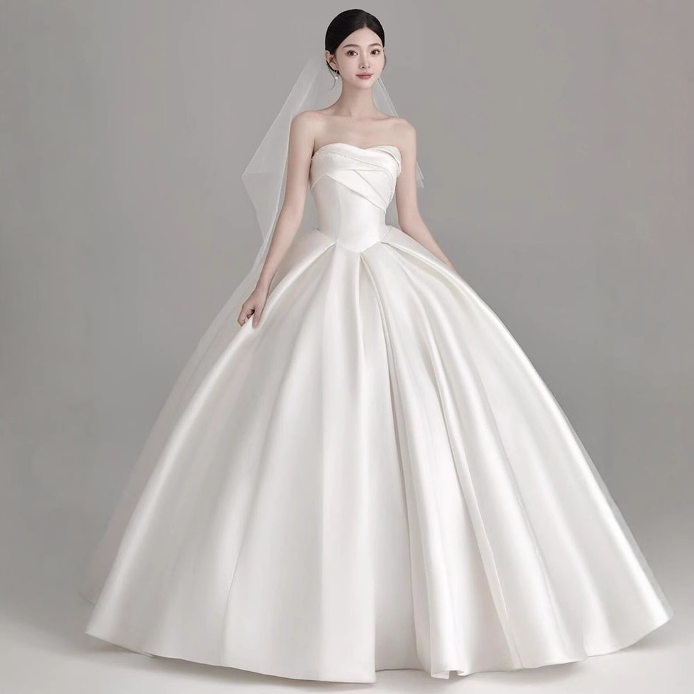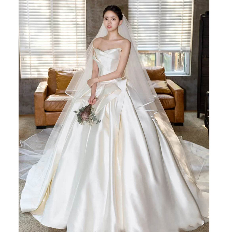 Gaun Pengantin Ringan Gaya Perancis Pengantin Wanita Model Baru 2025 Benang Utama Satin Berkualitas Tinggi Pria Kecil Ekor Ekor Gaun Wanita