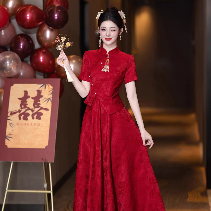 Cheongsam Gaya Tiongkok Baru Pakaian Bersulang Modifikasi 2025 Gaun Malam Pernikahan Pengantin Wanita Warna Merah Anggur Model Baru Gaun Pertunangan Wanita