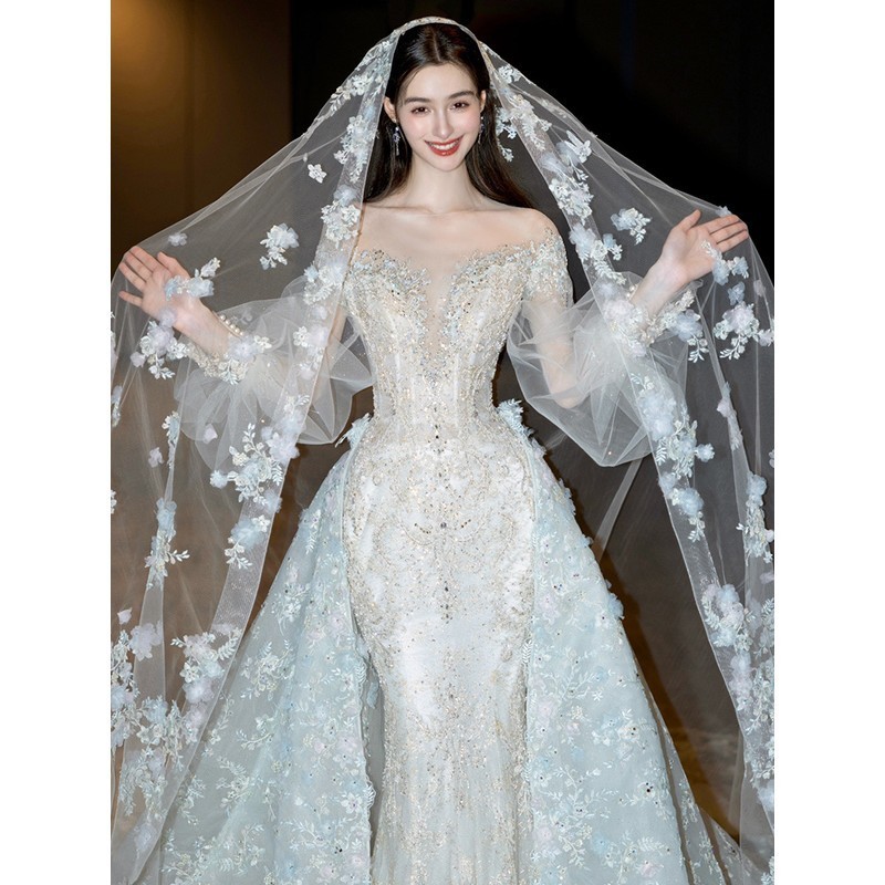 Gaun Pengantin Master Bahu L5T 2025 Pengantin Wanita Model Baru Ekor Besar Pria Kecil Mewah Bintang Berat Putri