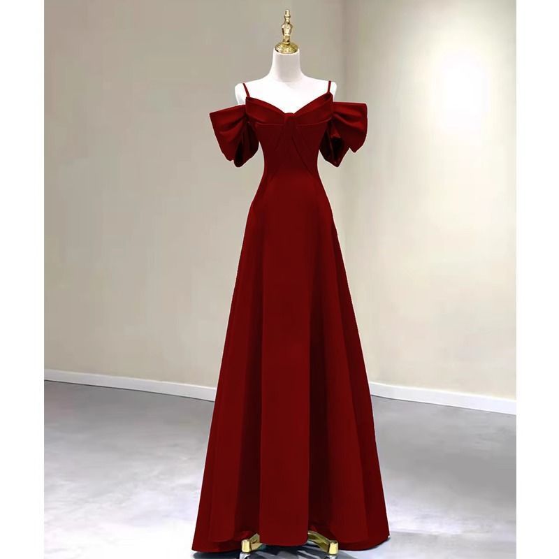 Pakaian Bersulang Pengantin Wanita Model Baru 2025 Musim Panas Bertali Merah Anggur Gaun Pertunangan Pernikahan Wanita Gaya Perancis Desain Unik Niche