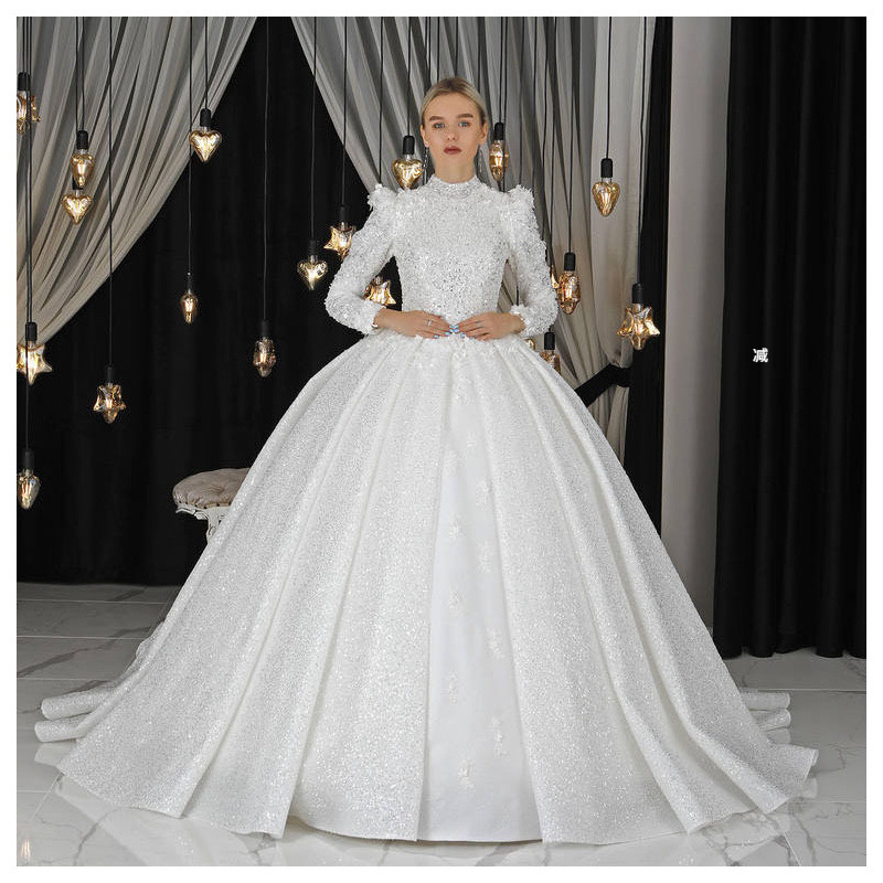 Gaun Pengantin Wanita Lengan Benang Transparan Kebesaran Ekor Ekor Ekor Mewah Ekor Ekor Ekor Ekor Ekor Super Mewah Gaya Istana Gaun Pengantin Wanita