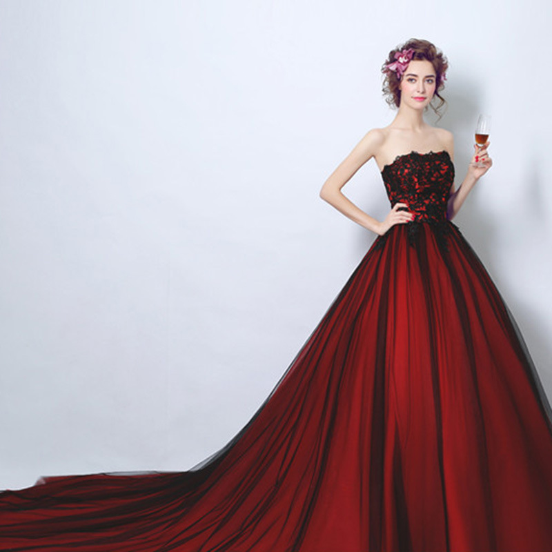 Gaun pengantin wanita warna anggur merah gaun panggang ulang musim panas baru 2024 gaun pernikahan elegan trailing besar gaun malam