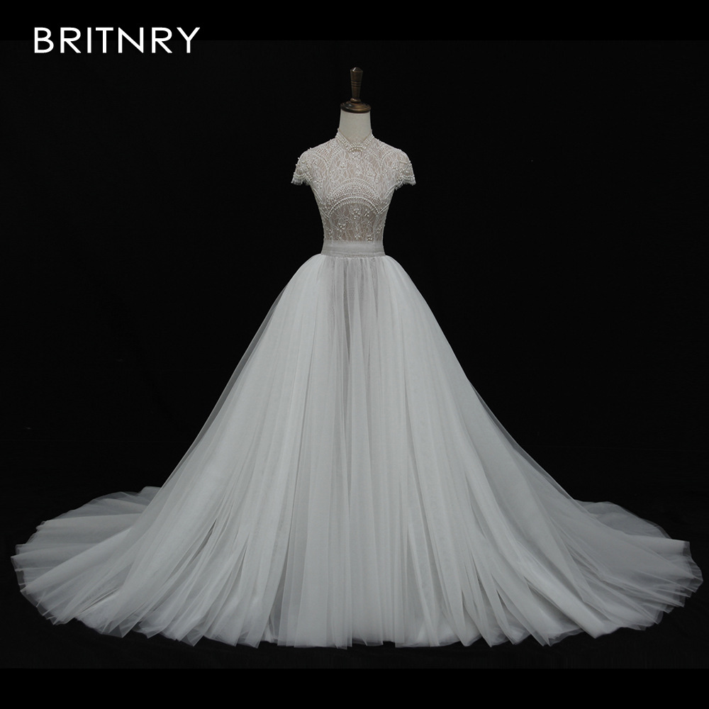Gaun Pengantin Ringan Model Baru Sederhana Kerah Tinggi Renda Lengan Panjang Satin