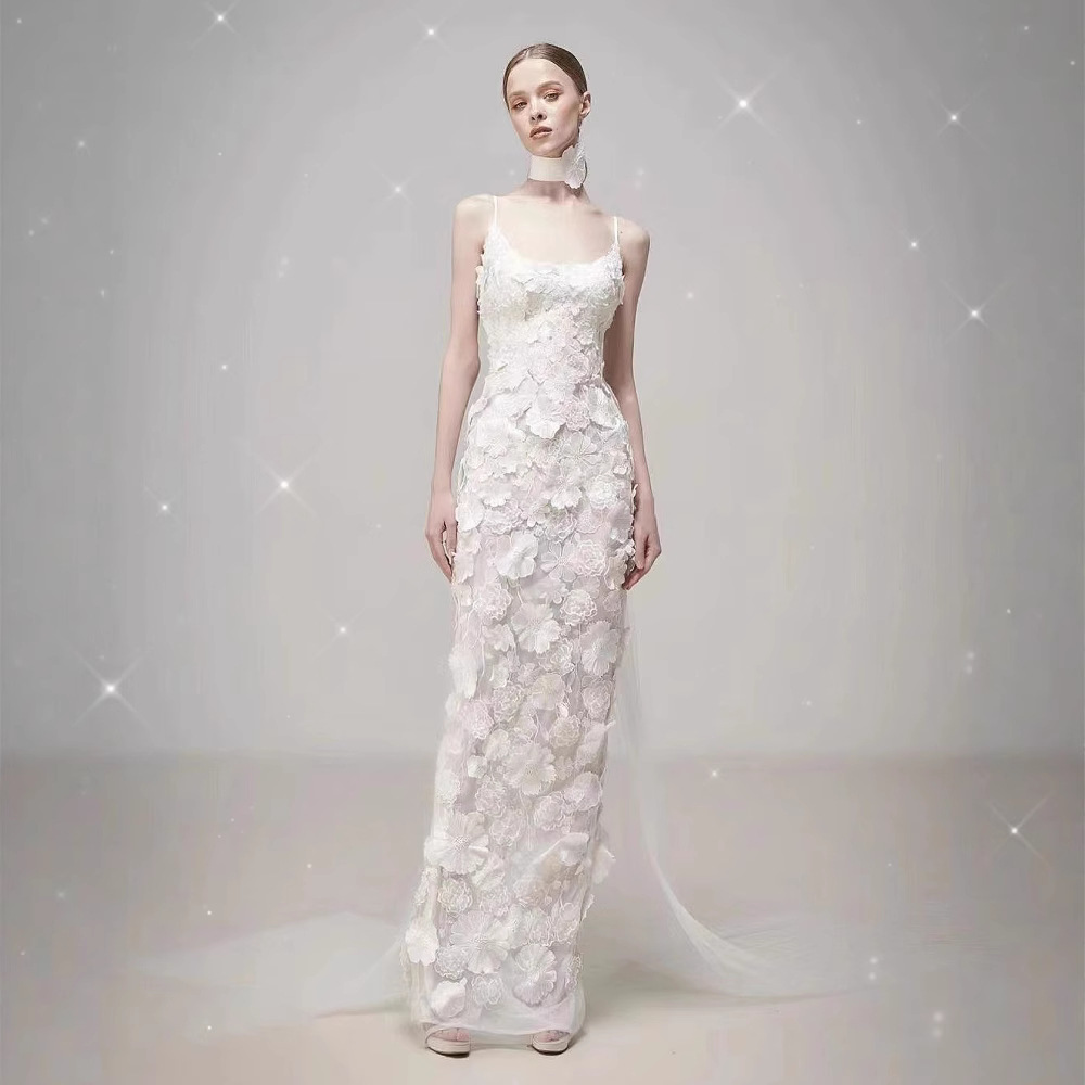 Wedding Dress Gaun Gaun Pengantin Bunga Tiga Dimensi Mewah Ringan Industri Berat