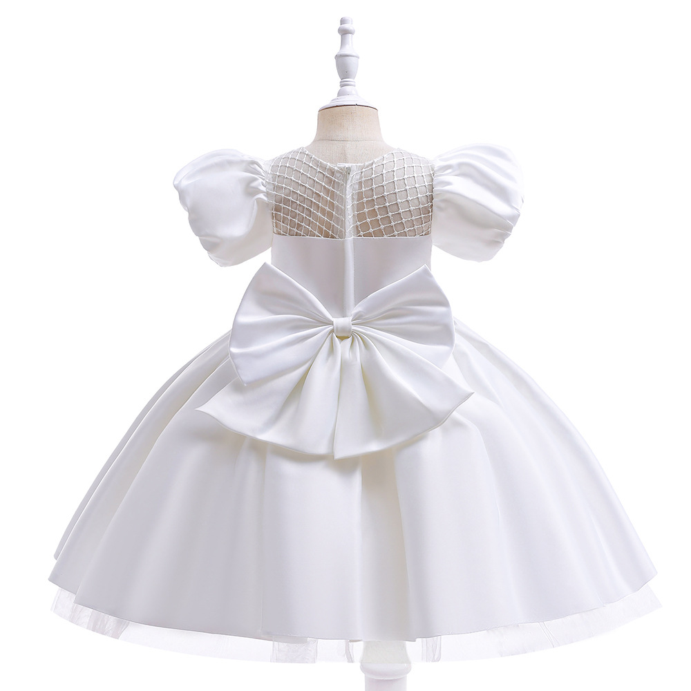 Gaun Anak Grosir Pabrik 2025 Gaun Pengantin Pita Besar Lengan Puff Baru Eropa dan Amerika Gaun Gadis Berbulu Gaun Putri