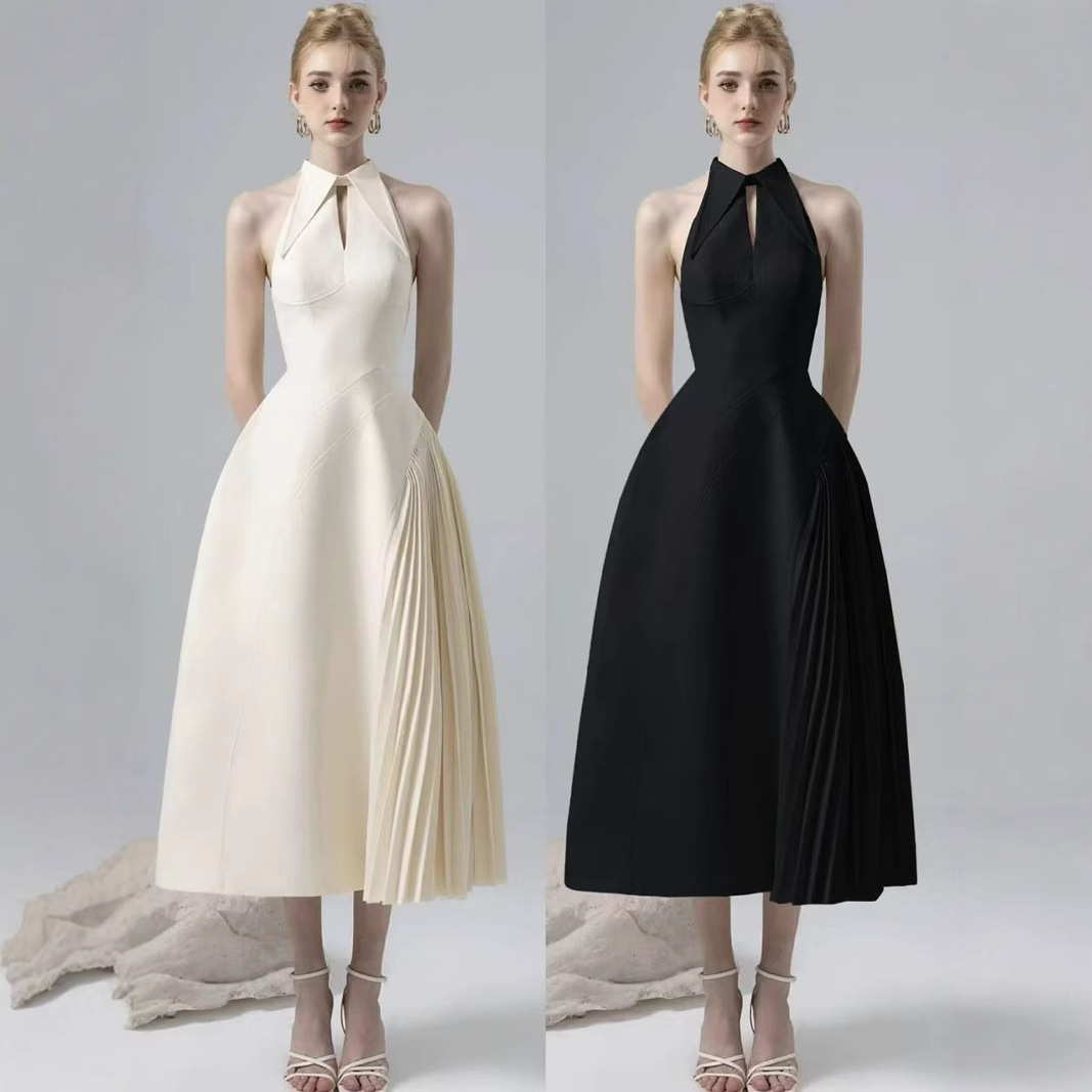 Gaun Leher Gantung Gaya Desain Niche Vietnam Rok Lipit Gaun Temperamen Dingin Tinggi Membentuk Pinggang Model Baru Musim Panas 2025 2054