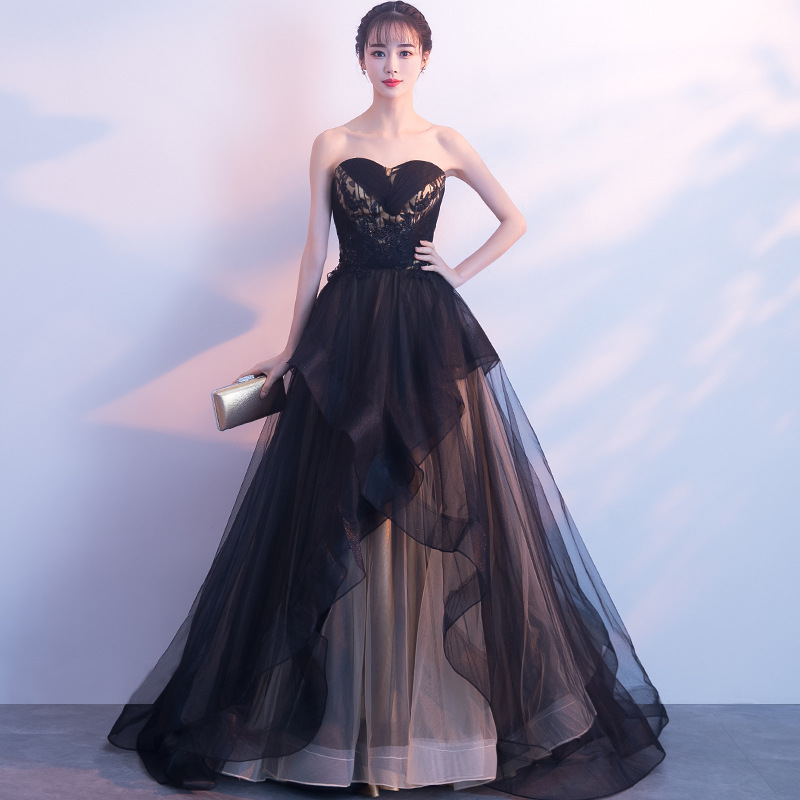 Gaun malam untuk wanita, Gaun jamuan makan malam elegan panjang hitam elegan tampan, gaun tuan rumah, gaun pernikahan 2024