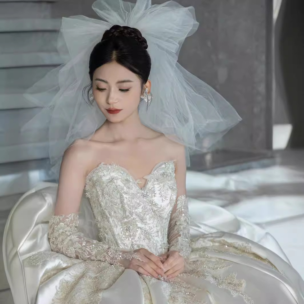 Gaun pengantin atas tabung Satin, benang utama Prancis kecil ekor besar kualitas tinggi Musim Panas 2024