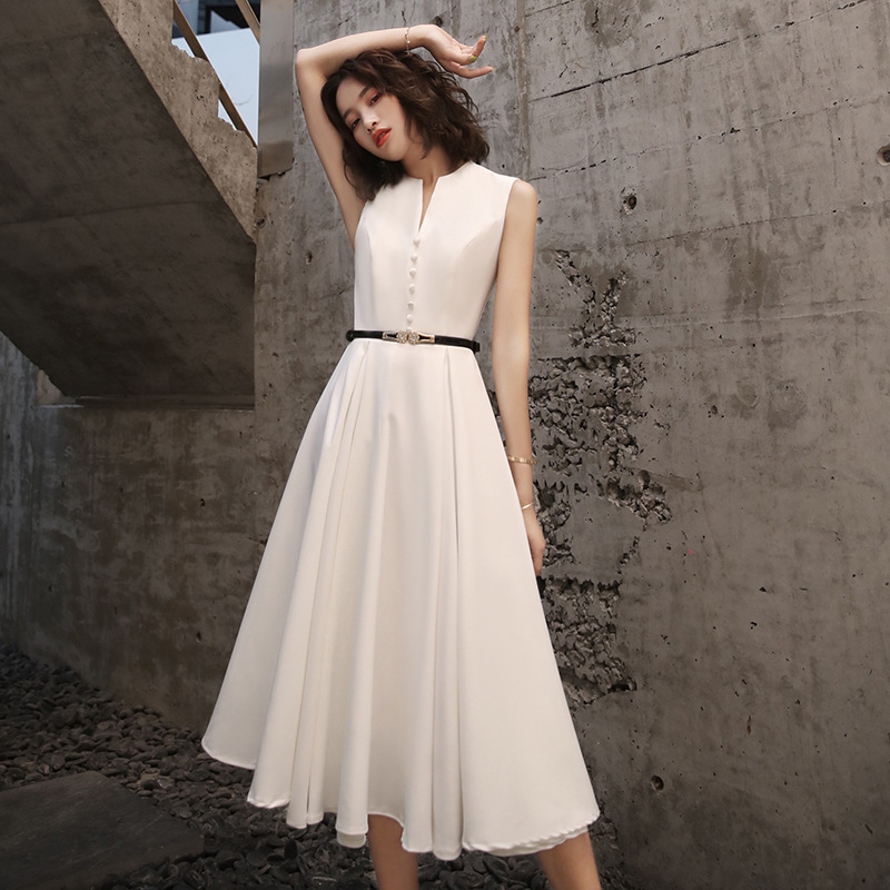 Gaun malam kecil untuk wanita, gaun acara jamuan makan malam gaya putih sederhana dan elegan 2024