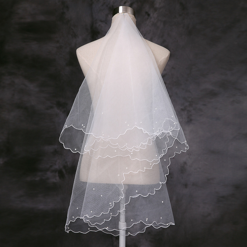 Kerudung benang pernikahan pengantin hiasan kepala lapisan tunggal 1.5M kerudung mutiara putih lembut grosir pabrik pasokan langsung dalam stok batch campuran