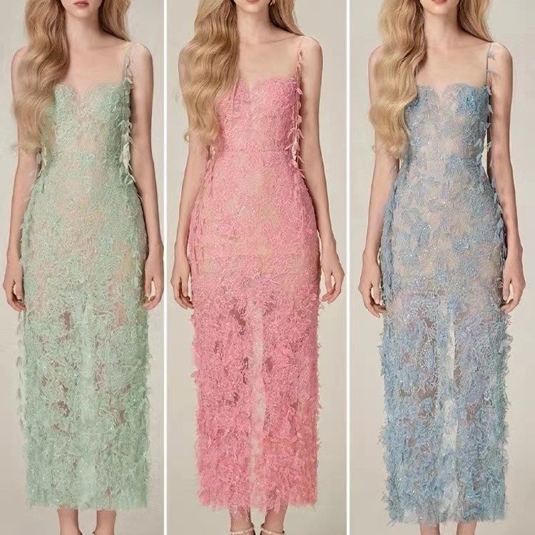 33016 # gaun perdagangan luar negeri gaun malam dengan tali manik-manik bahu tunggal