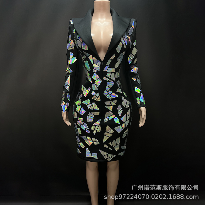 小众设计感彩色几何亮片立肩包臀裙通勤女士西装裙生日高端礼服