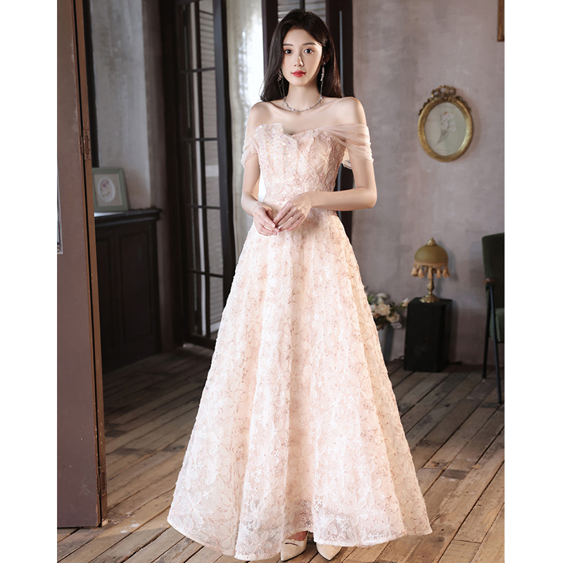 Gaun malam kelas atas untuk wanita, gaun tuan rumah dewasa upacara pemeriksaan seni niche Prancis baru bahu terbuka gaun pengantin musim dingin