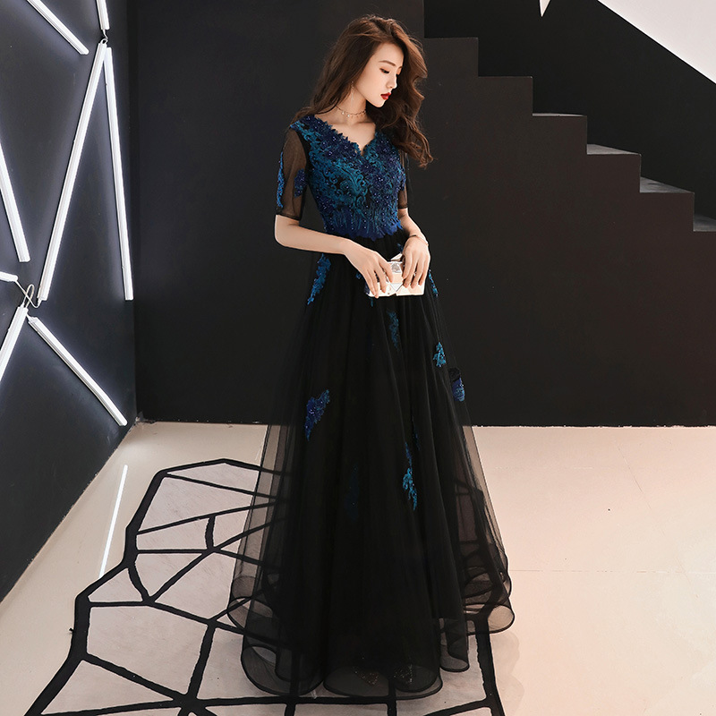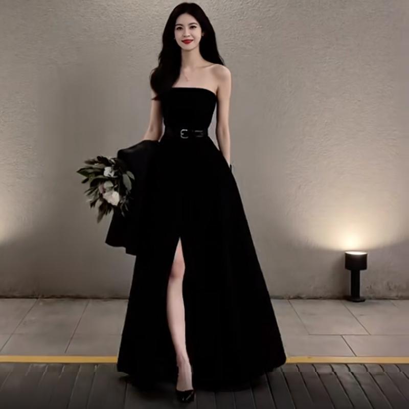 Gaun Malam Warna Hitam Pakaian Bersulang Pengantin Wanita Bercabang Trap Sederhana Fashion Pesta Tahunan Gaun Bisa Dipakai Sehari-hari Wanita