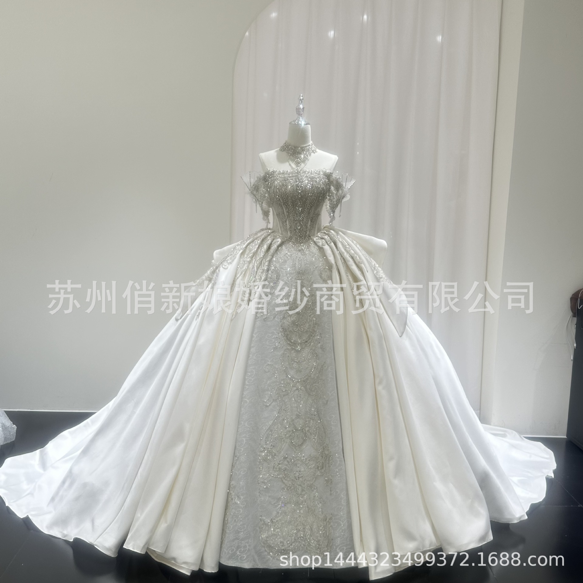 Gaun Pengantin Satin Bahu 2025 Pengantin Wanita Model Baru Benang Utama Berkualitas Tinggi Tekstur Prancis Berat Mewah Panjang Ditarik