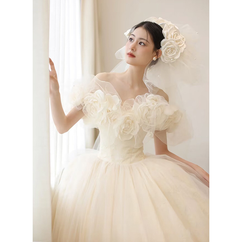 Gaun Pengantin Utama Pengantin Gaun Pengantin Perancis Ringan 2025 Benang Pengantin Baru Berkualitas Tinggi Benang Keluar Tubuh Kecil Terlihat Langsing