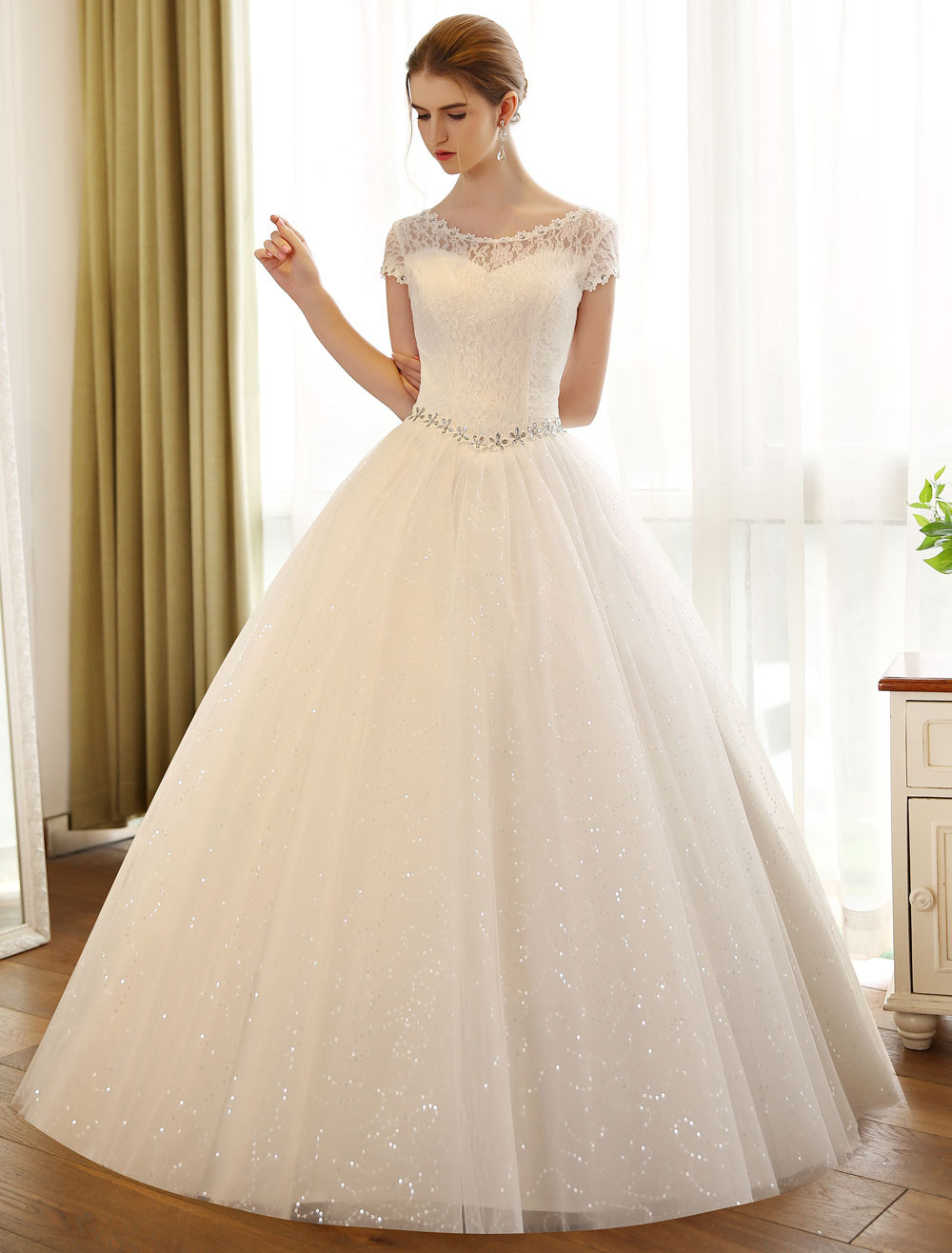 Gaun pernikahan sederhana lengan pendek AliExpress wish new Amazon perdagangan luar negeri Eropa dan Amerika rok satin ukuran plus leher bulat elegan