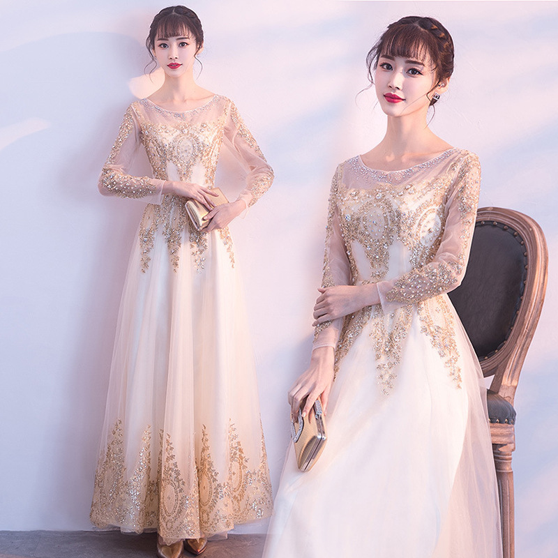 Gaun malam panjang sedang grosir 2026 model baru gaun pengantin lengan panjang gaun pesta gaun pengiring pengantin wanita satu potong dropshipping
