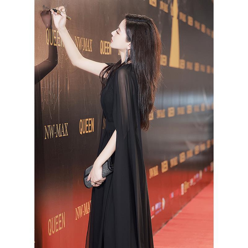 Gaun malam wanita lampu jamuan makan mewah niche high-end Perancis high-end karpet merah hitam kostum paduan suara lagu merah