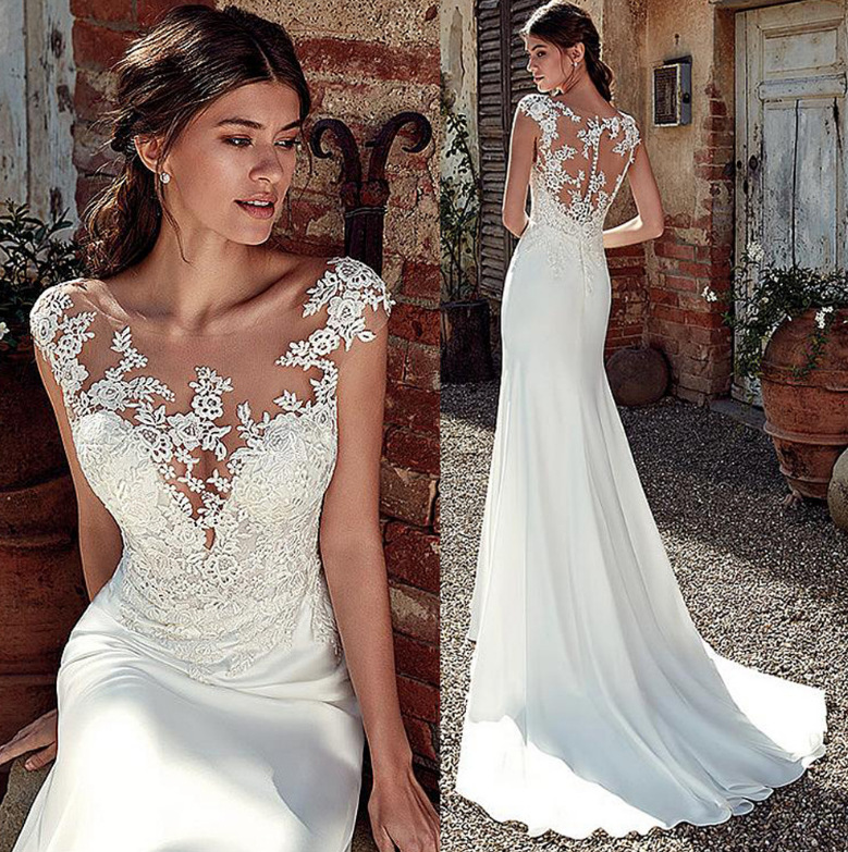 Gaun pernikahan tanpa lengan, gaya Eropa dan Amerika Amazon AliExpress berharap gaun pernikahan baru renda sederhana pendek tanpa lengan