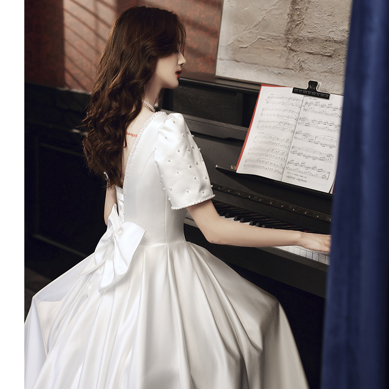 Gaun pernikahan cahaya atas tabung gaya korea gaun malam ekor ikan satin seksi lisensi ceruk gaun putih kecil studio perjalanan tembakan benang pintu pria kecil