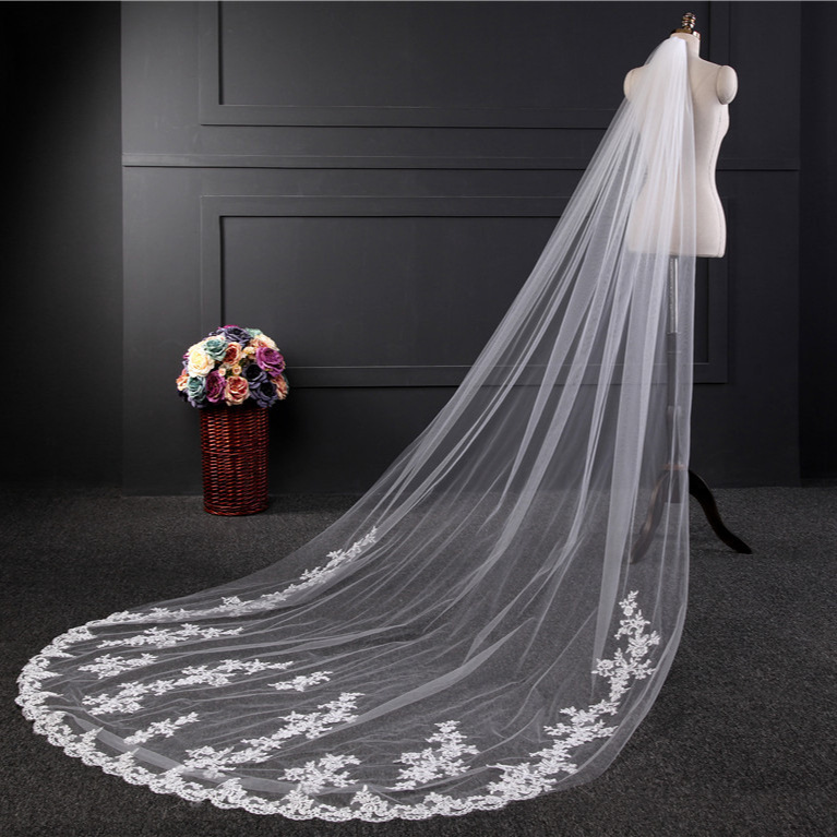 HL05 kerudung perdagangan luar negeri Swiss net pengantin pernikahan 1.8 m lebar trailing row bunga kerudung renda panjang