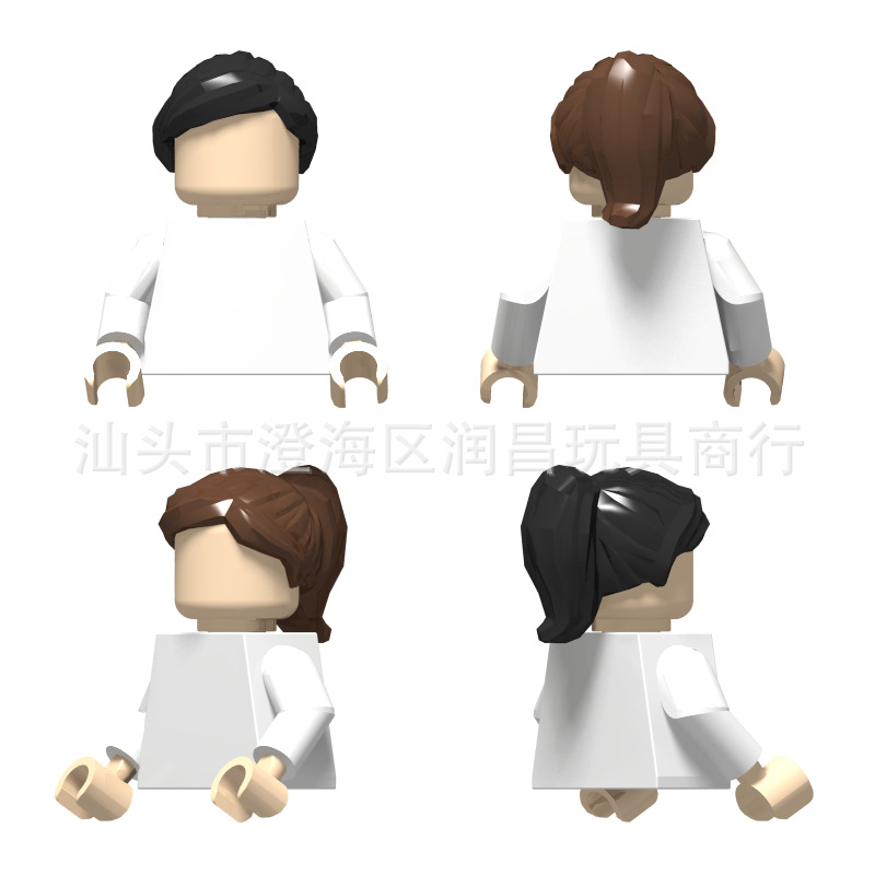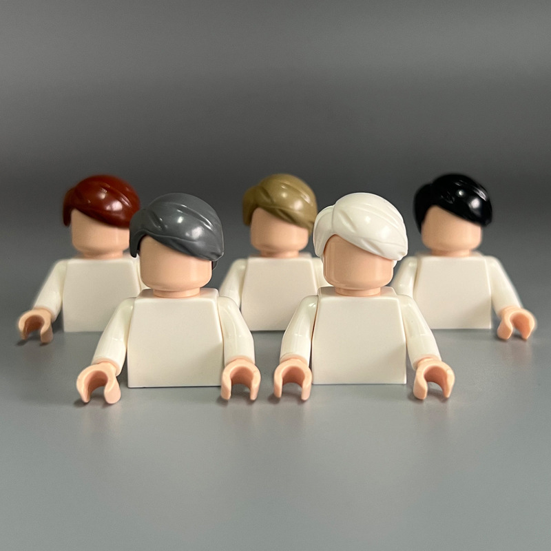Perdagangan luar negeri lintas batas, blok bangunan kecil, aksesoris minifigure, rambut, topi, kompatibel dengan 87990, kuncir rambut, 50 gram