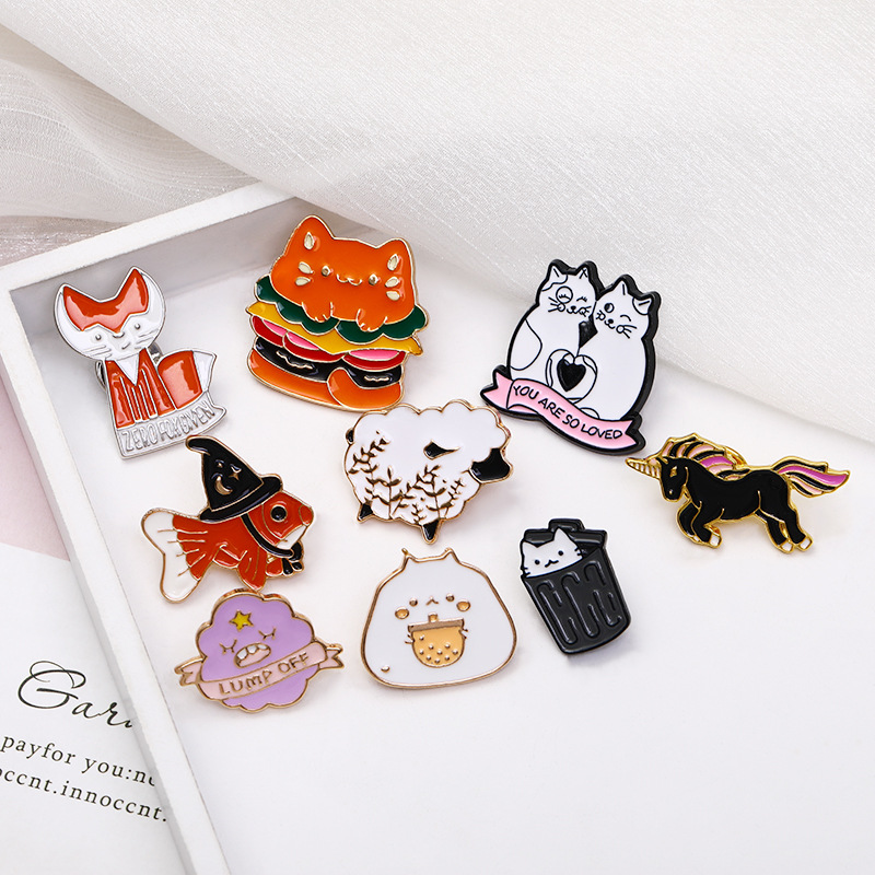 Bros seri hewan campuran lintas batas bros lucu kartun kucing lencana logam aksesori pakaian lencana Anime baru