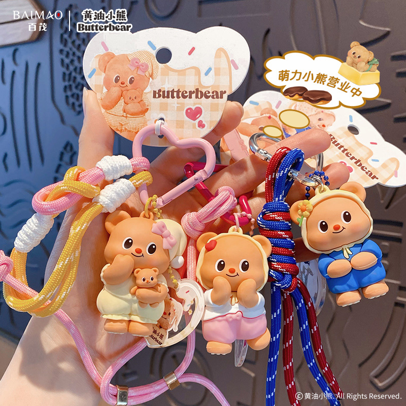 Baimao Pakaian Beruang Mentega Asli Peragaan Gantungan Kunci Liontin DIY Ornamen Liontin Tas Beruang Kecil Kreatif Indah Aksesori Gantung Tas Pria dan Wanita