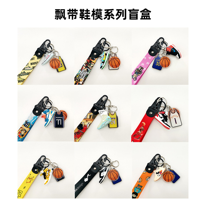 Gantungan kunci modis kotak buta aj cetakan sepatu pita Jersey cetakan sepatu penutup robek kotak buta 12 pasang
