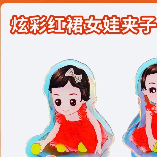 Klip warna-warni gaun merah wanita bayi liontin gantungan kunci kartun akrilik transparan catatan perifer tempat Jurnal