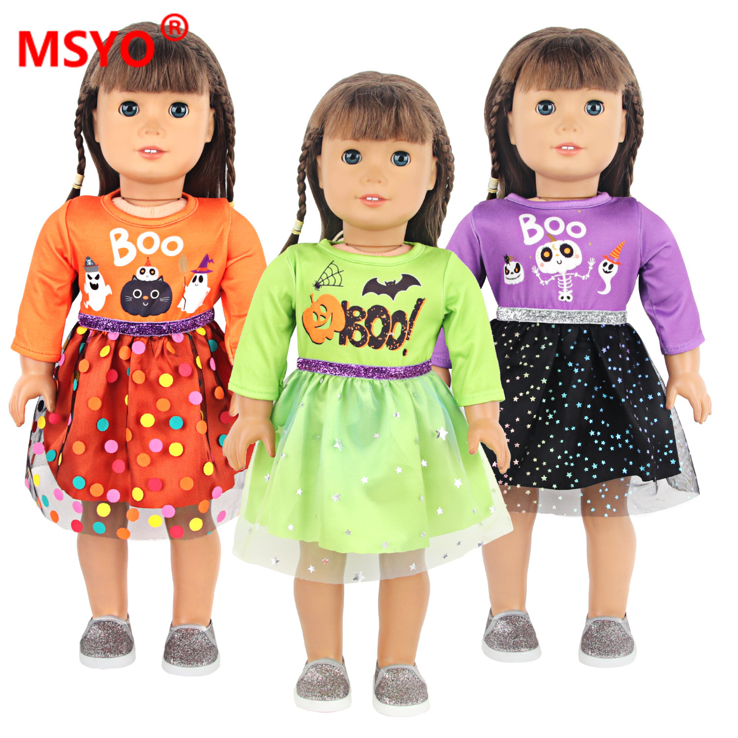 Boneka anak perempuan Amerika 18 inci baru pakaian Halloween boneka xiafu gaun kasa Halloween cosplay