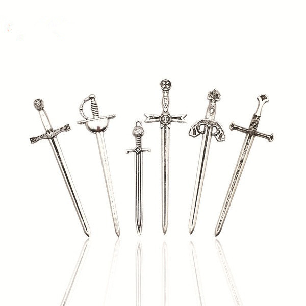 Diy Aloi aksesoris perhiasan antik Xizang Pedang Perak 6 gaya Pedang Panjang aksesoris cosplay pedang Barat