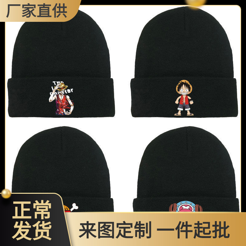 Topi rajut Luffy bajak laut, topi wol motif anime dua dimensi rojoba, topi pullover hangat luar ruangan musim dingin