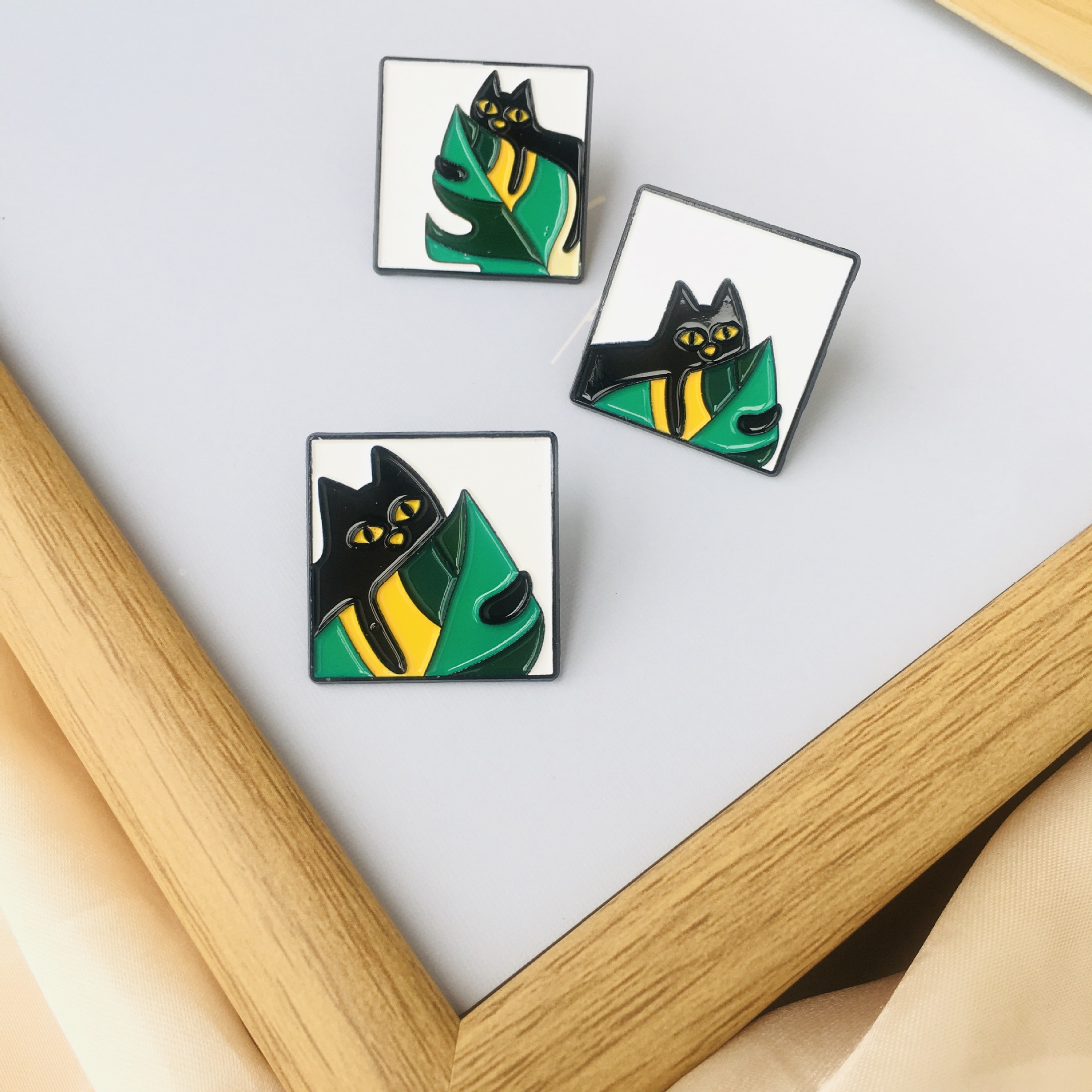 Bros kucing hitam imut untuk lintas batas Eropa dan Amerika bros enamel kartun kreatif lucu aksesori pakaian pin lencana